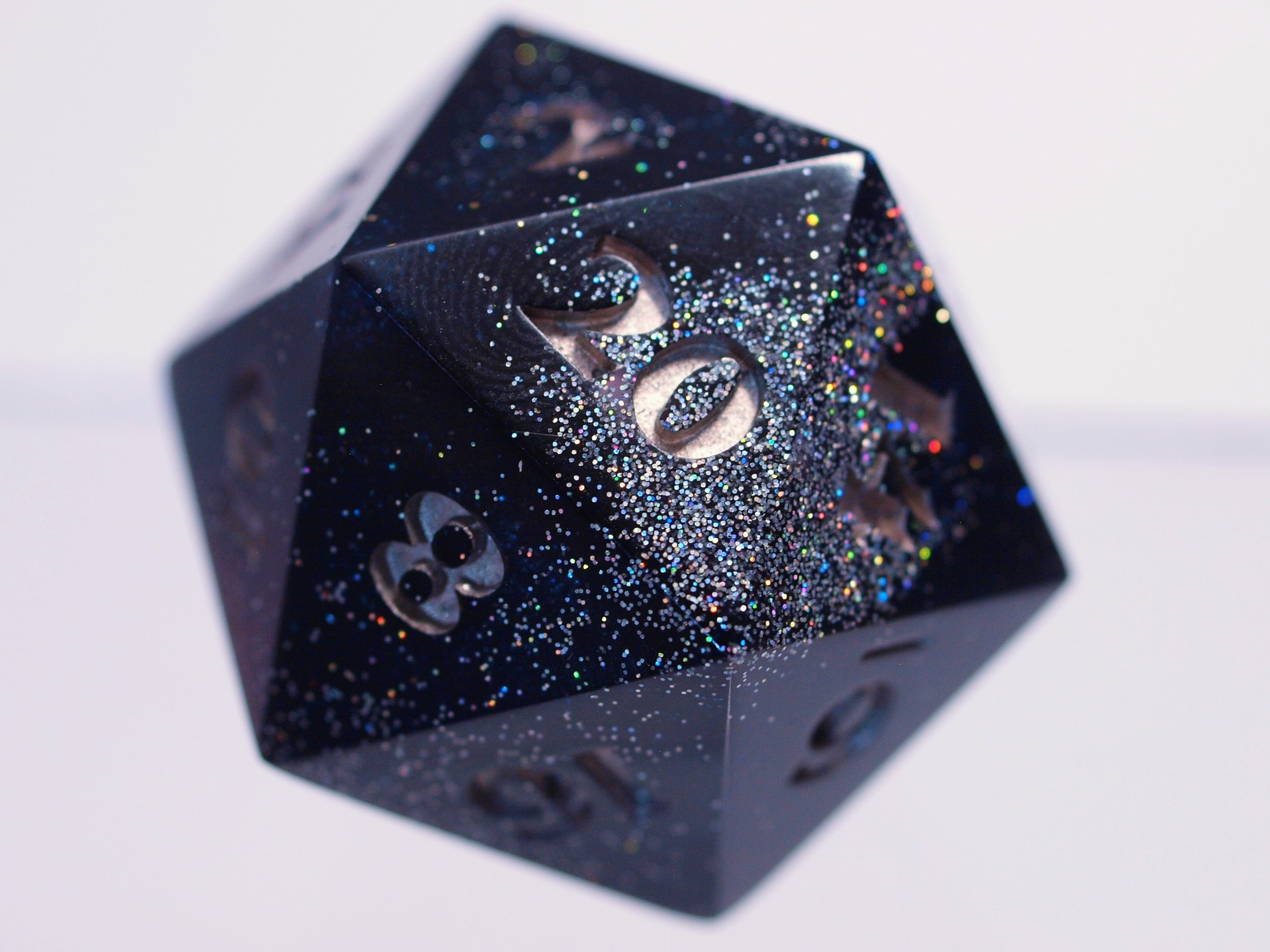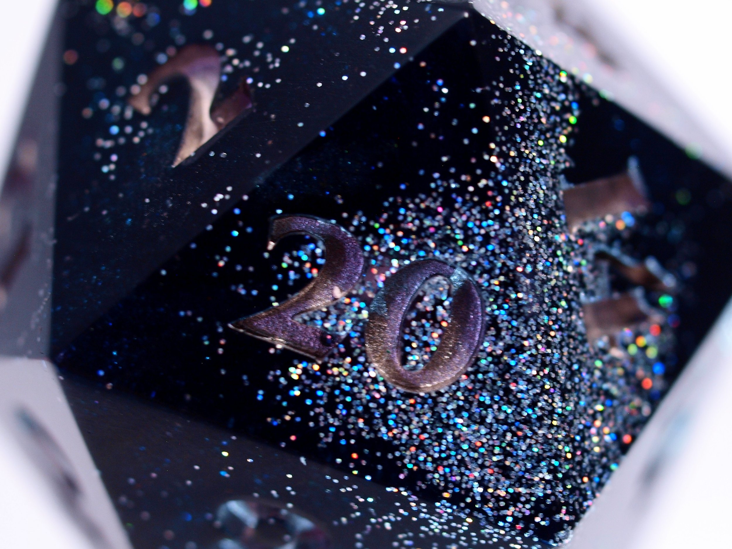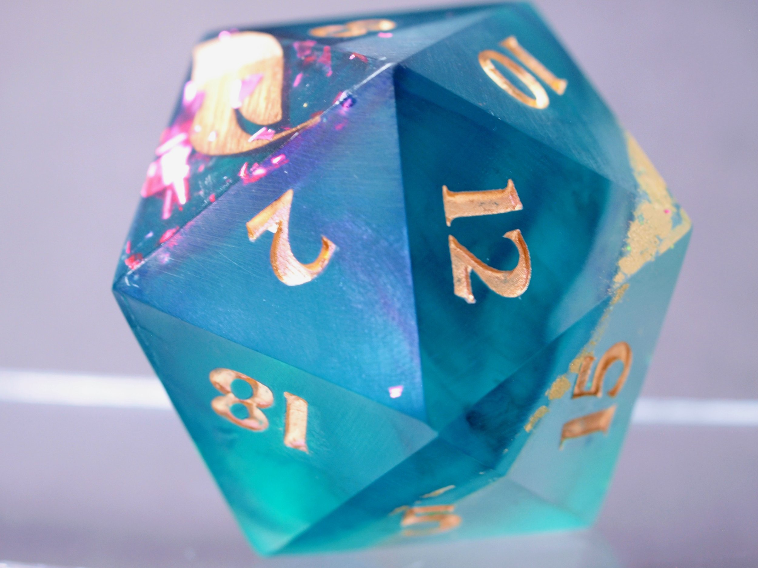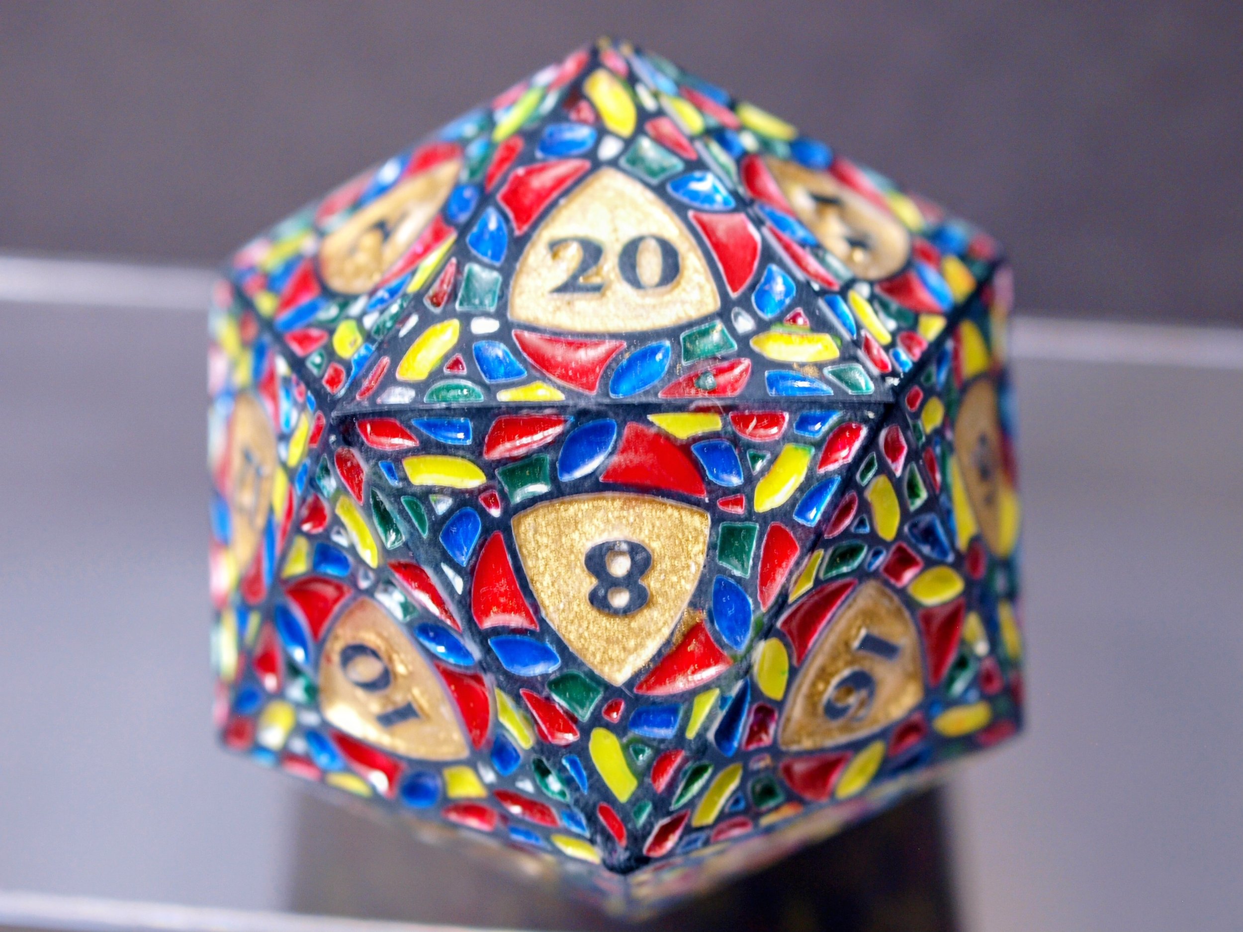 The size of a baby’s fist, the only d20 that’s not a choking hazard (unless you are a spectacularly determined creature). Not quite big enough to be a table breaker, but still a very admirable size, this beauty will stun players and GMS alike. Especially if you throw it hard enough.*