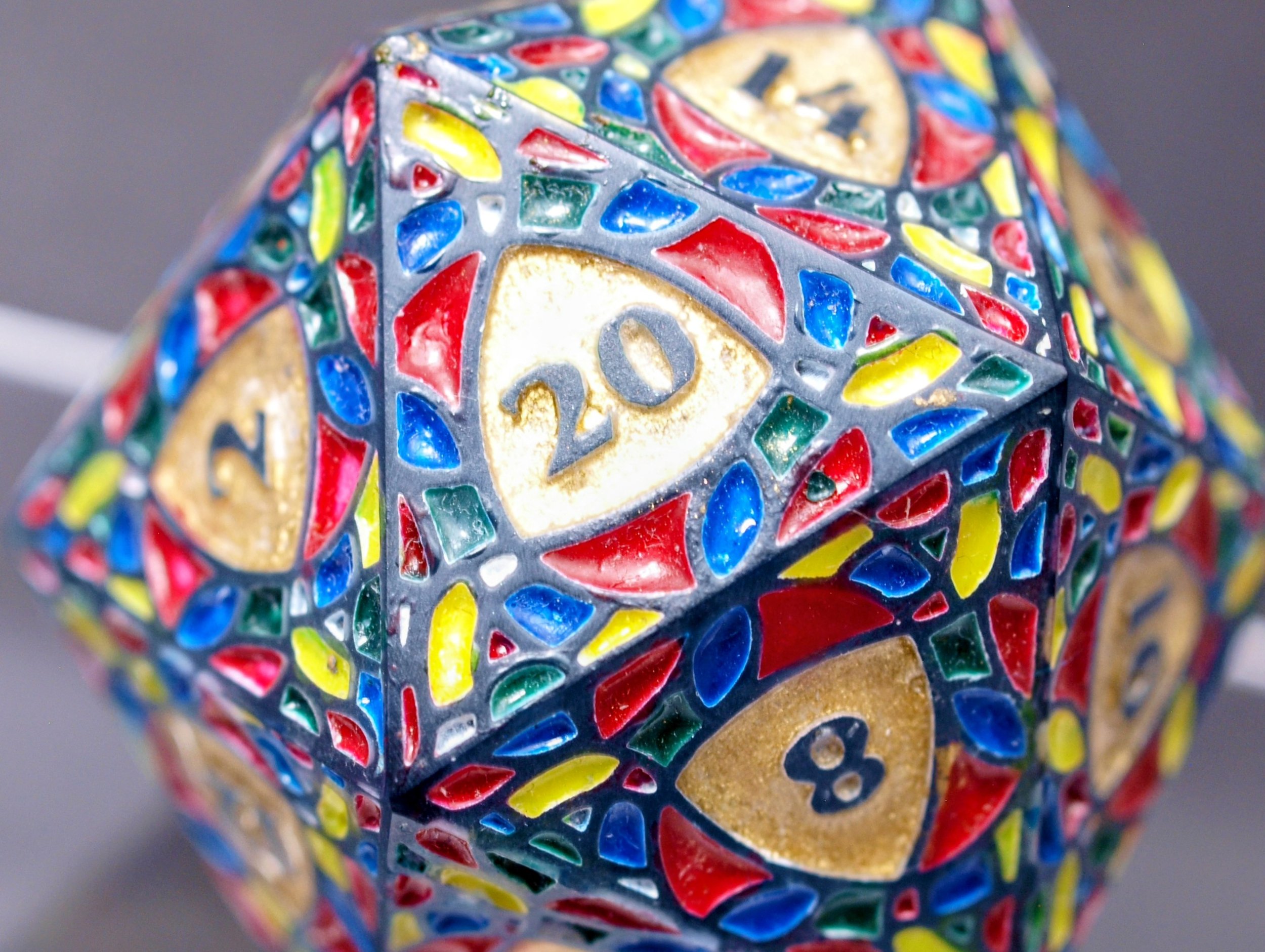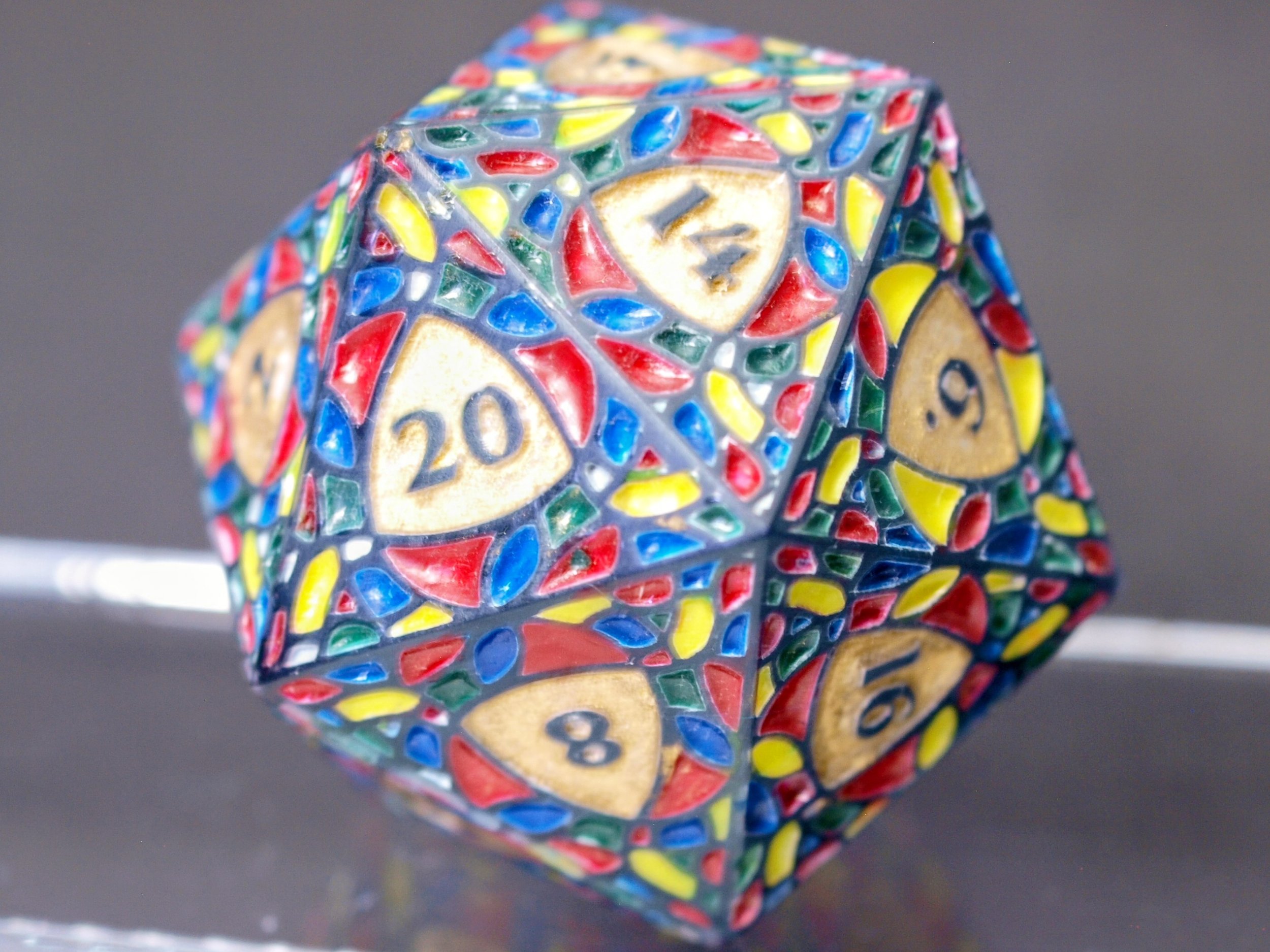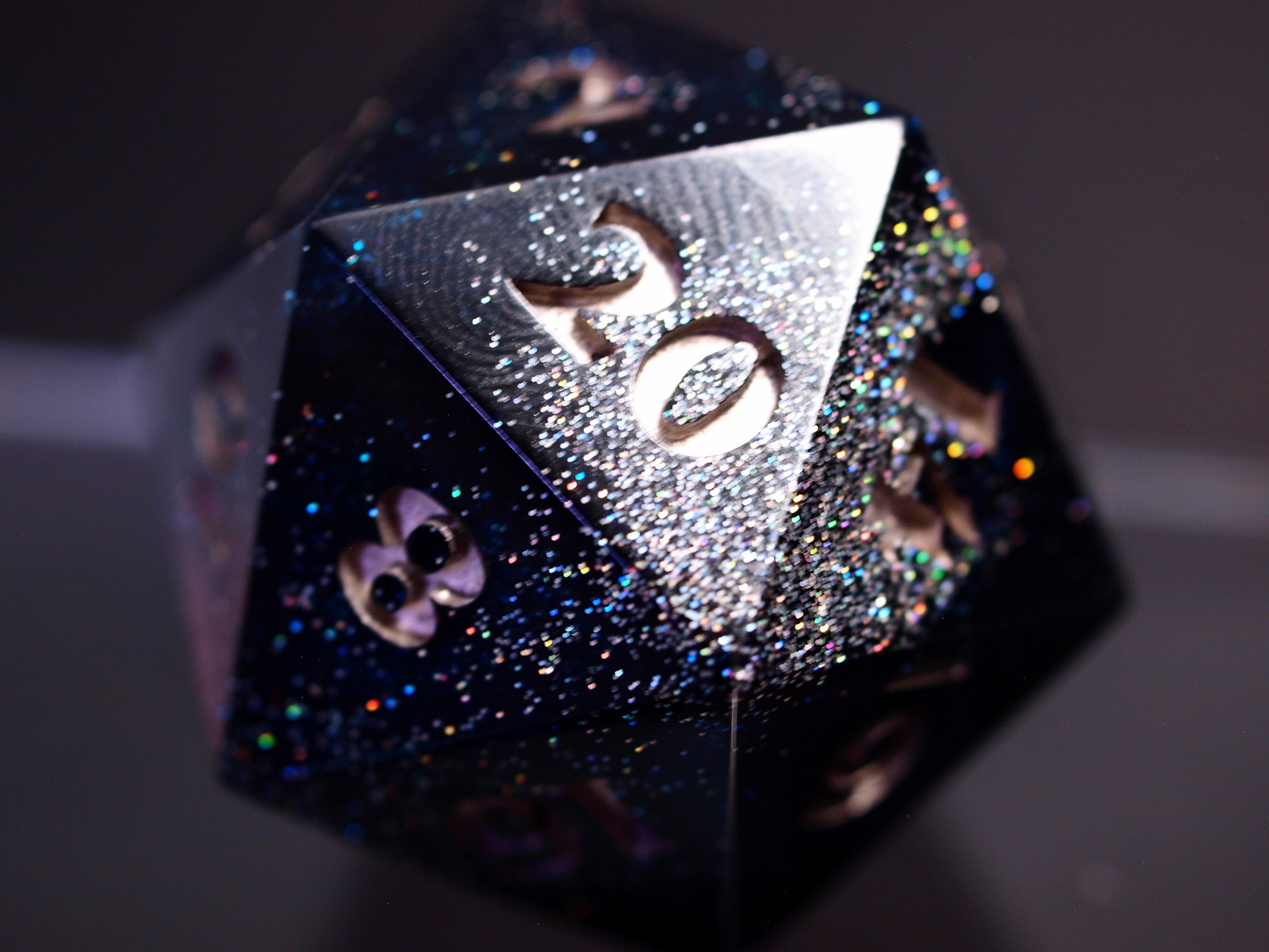 The size of a baby’s fist, the only d20 that’s not a choking hazard (unless you are a spectacularly determined creature). Not quite big enough to be a table breaker, but still a very admirable size, this beauty will stun players and GMS alike. Especially if you throw it hard enough.*