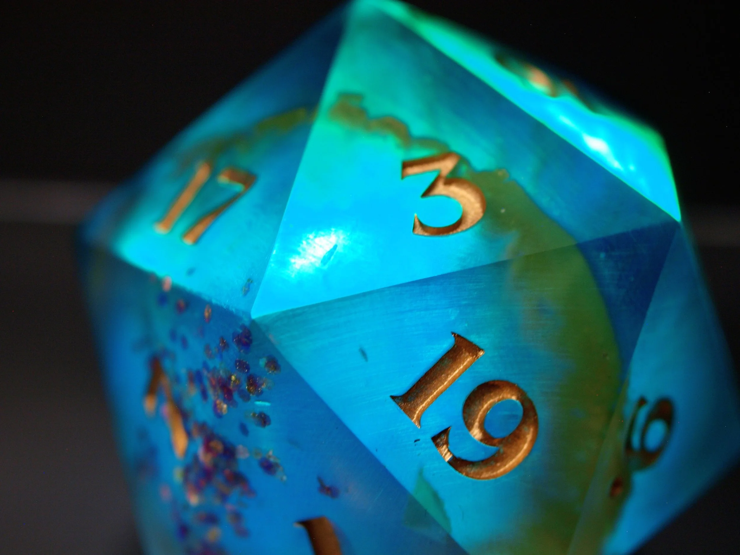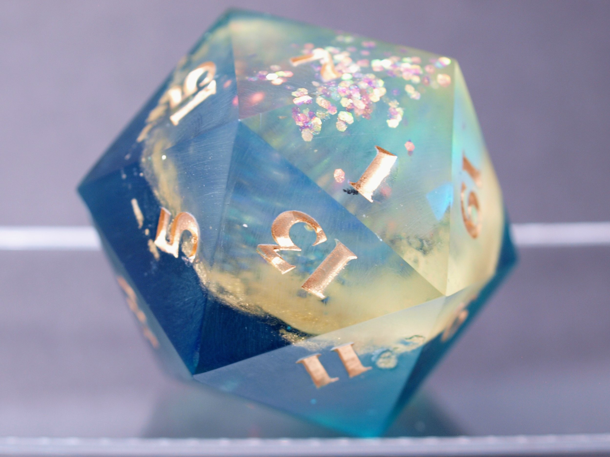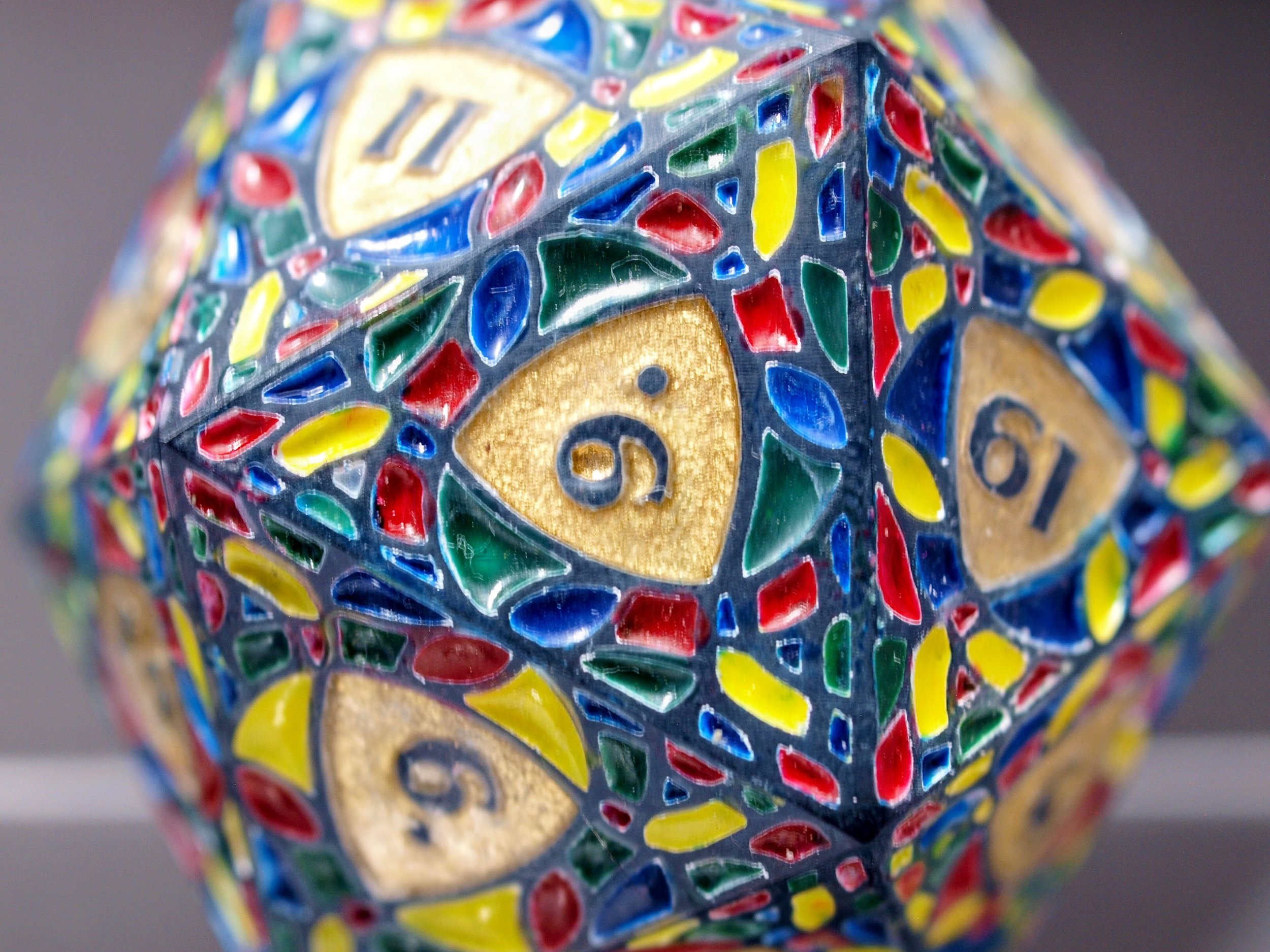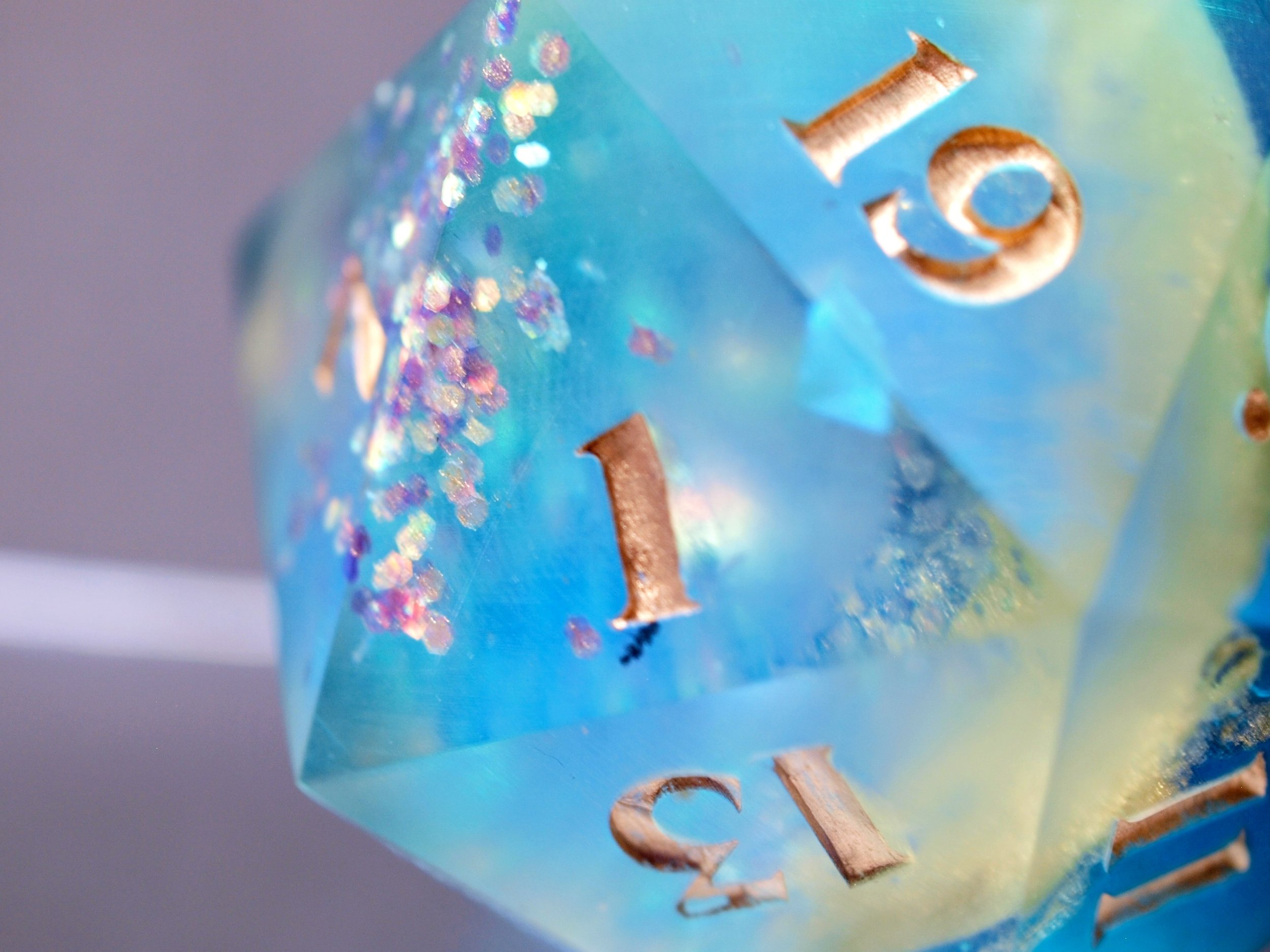 The size of a baby’s fist, the only d20 that’s not a choking hazard (unless you are a spectacularly determined creature). Not quite big enough to be a table breaker, but still a very admirable size, this beauty will stun players and GMS alike. Especially if you throw it hard enough.*