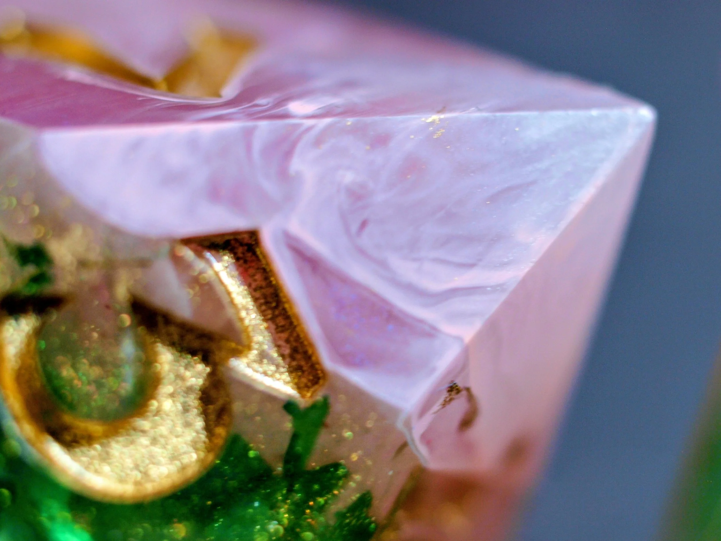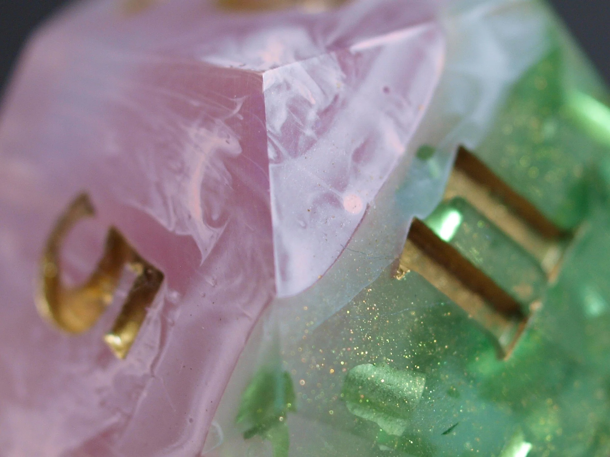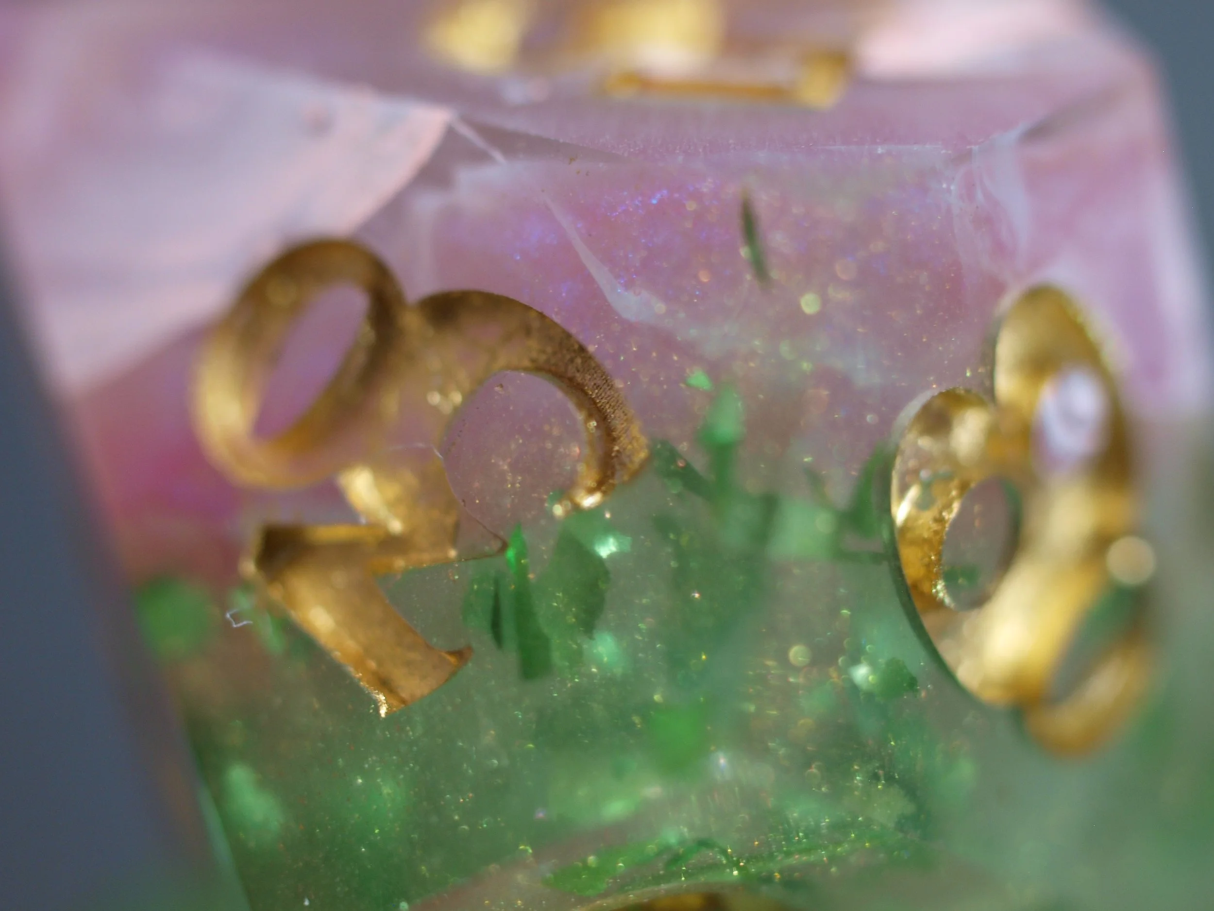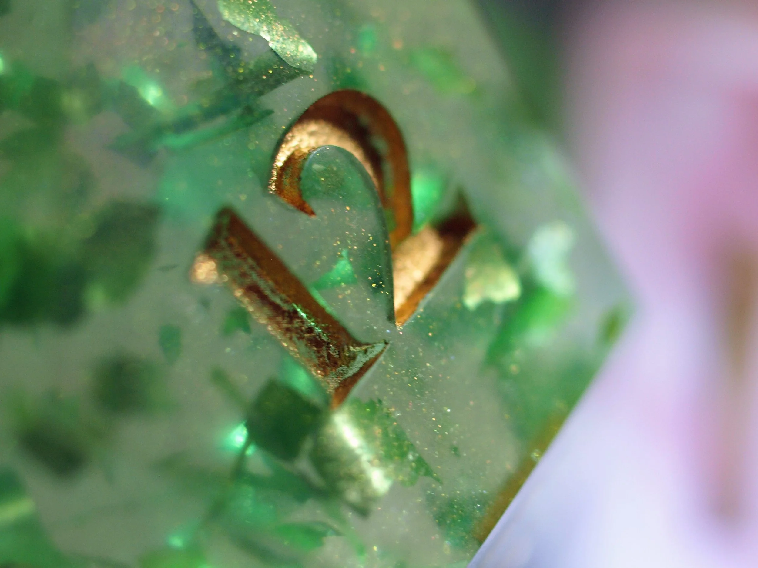 A dice set in a discontinued style, these deeply green and gold dice are a classic any day and will never fade.