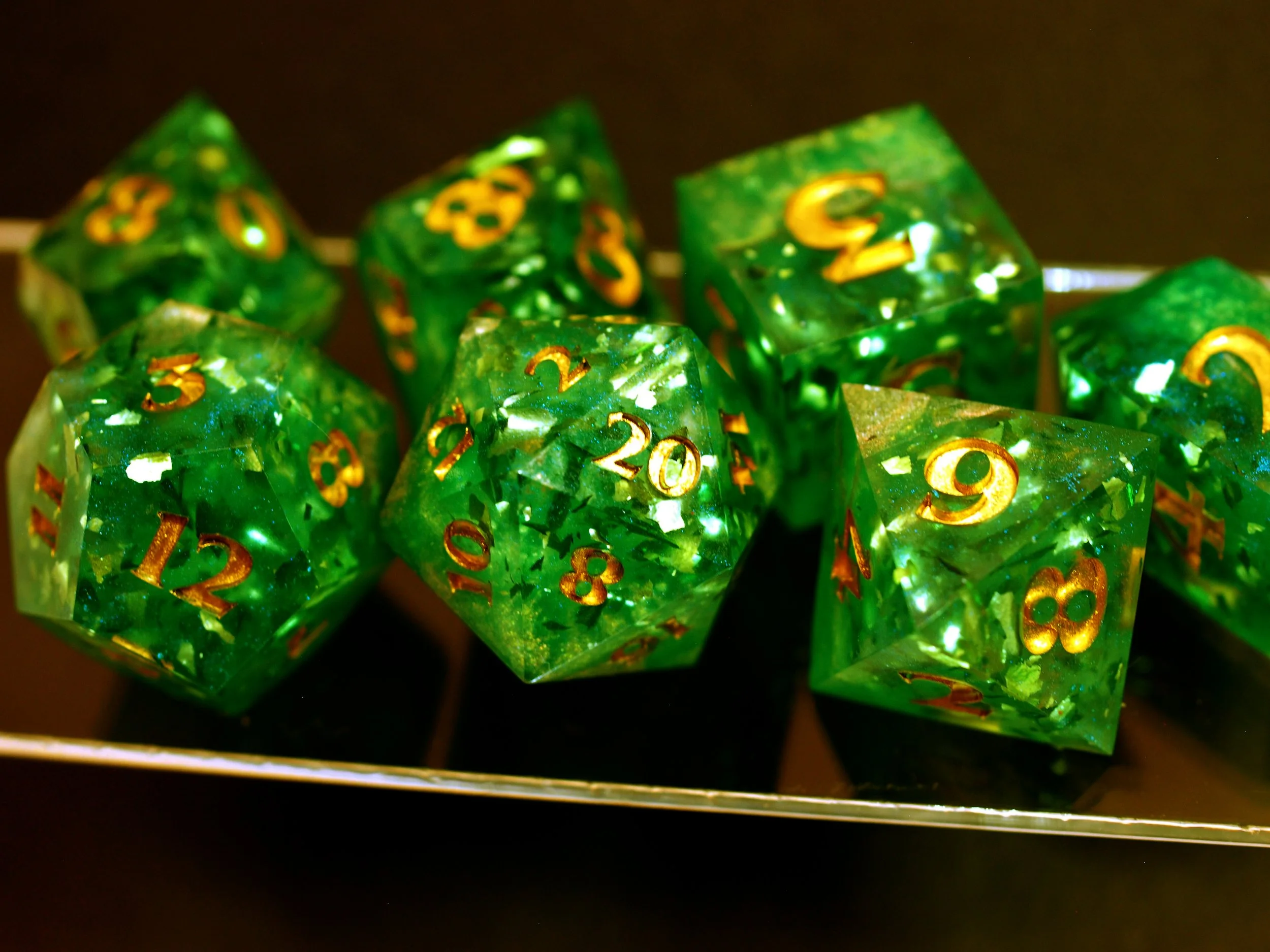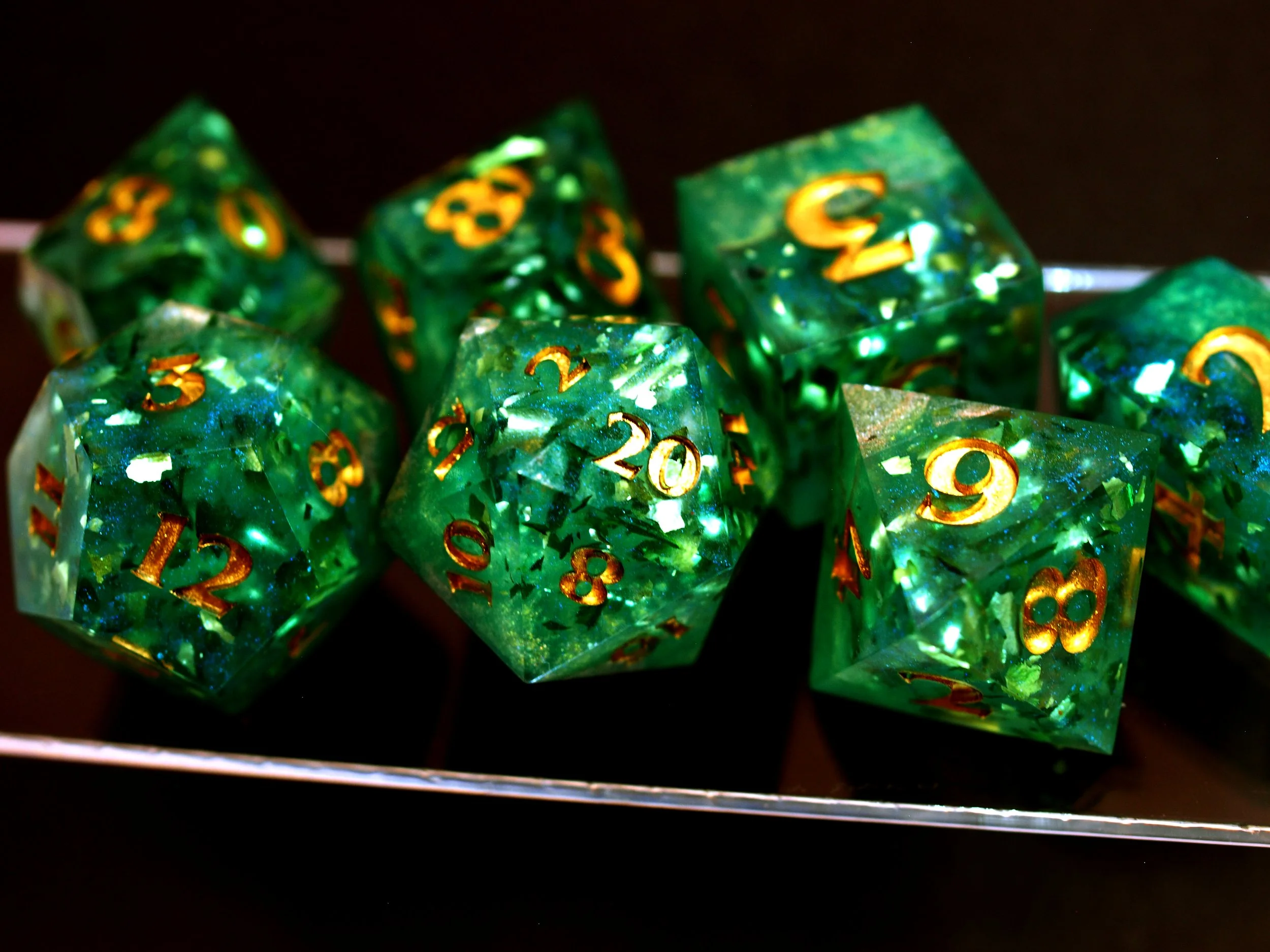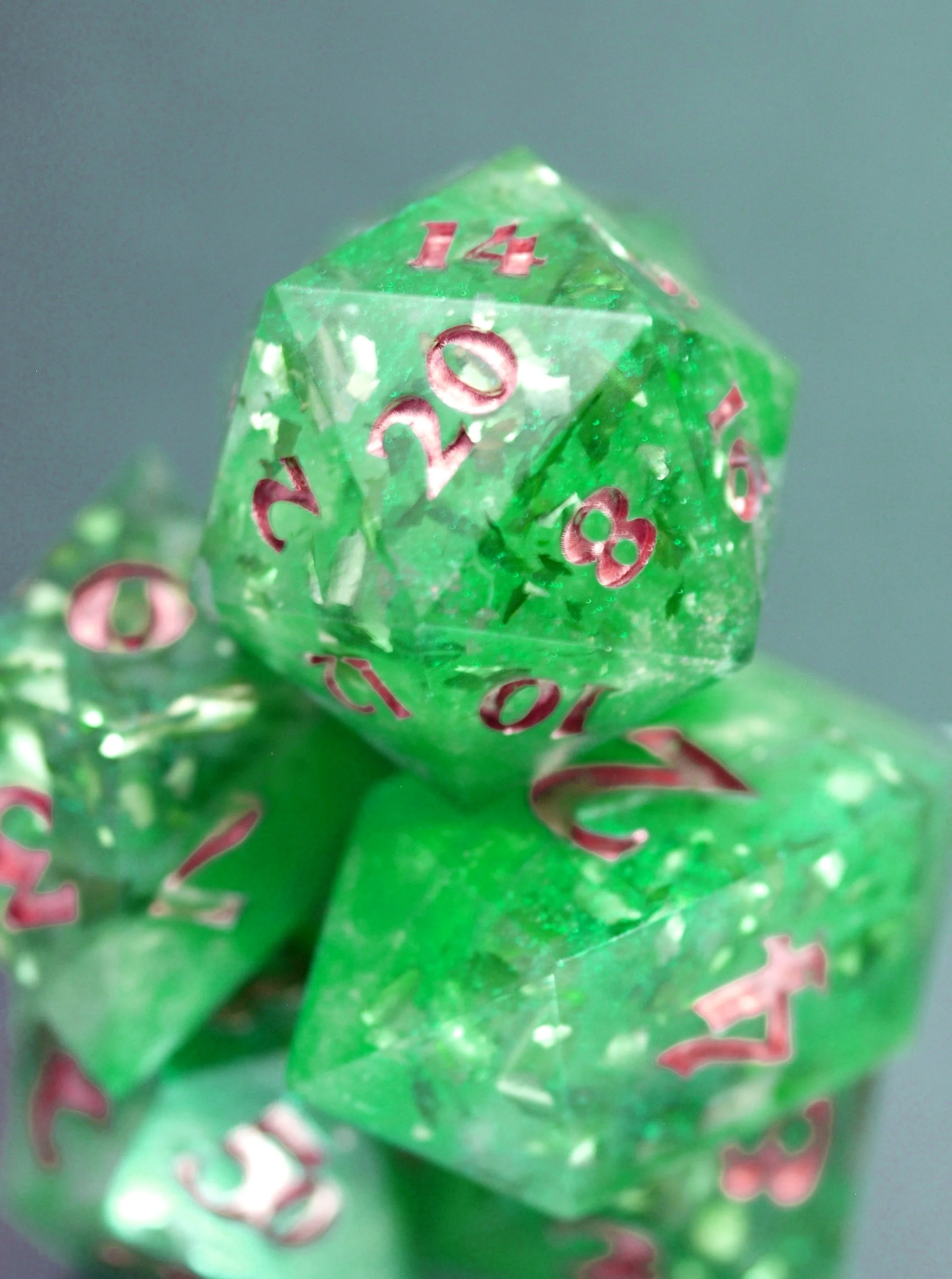 INCREASE THE BEEF. My dice are larger than standard sizes by as much as 50%, designed, modeled, 3d printed, molded, cast and finished all by my own two hands. Feel free to contact me for any custom requests!
